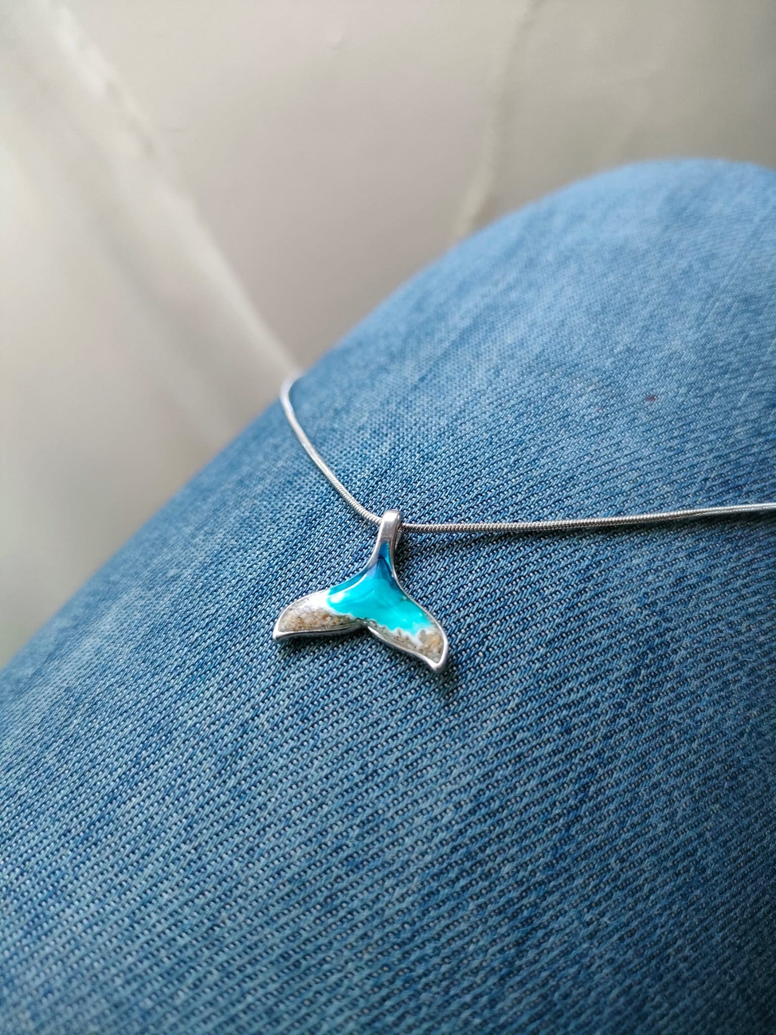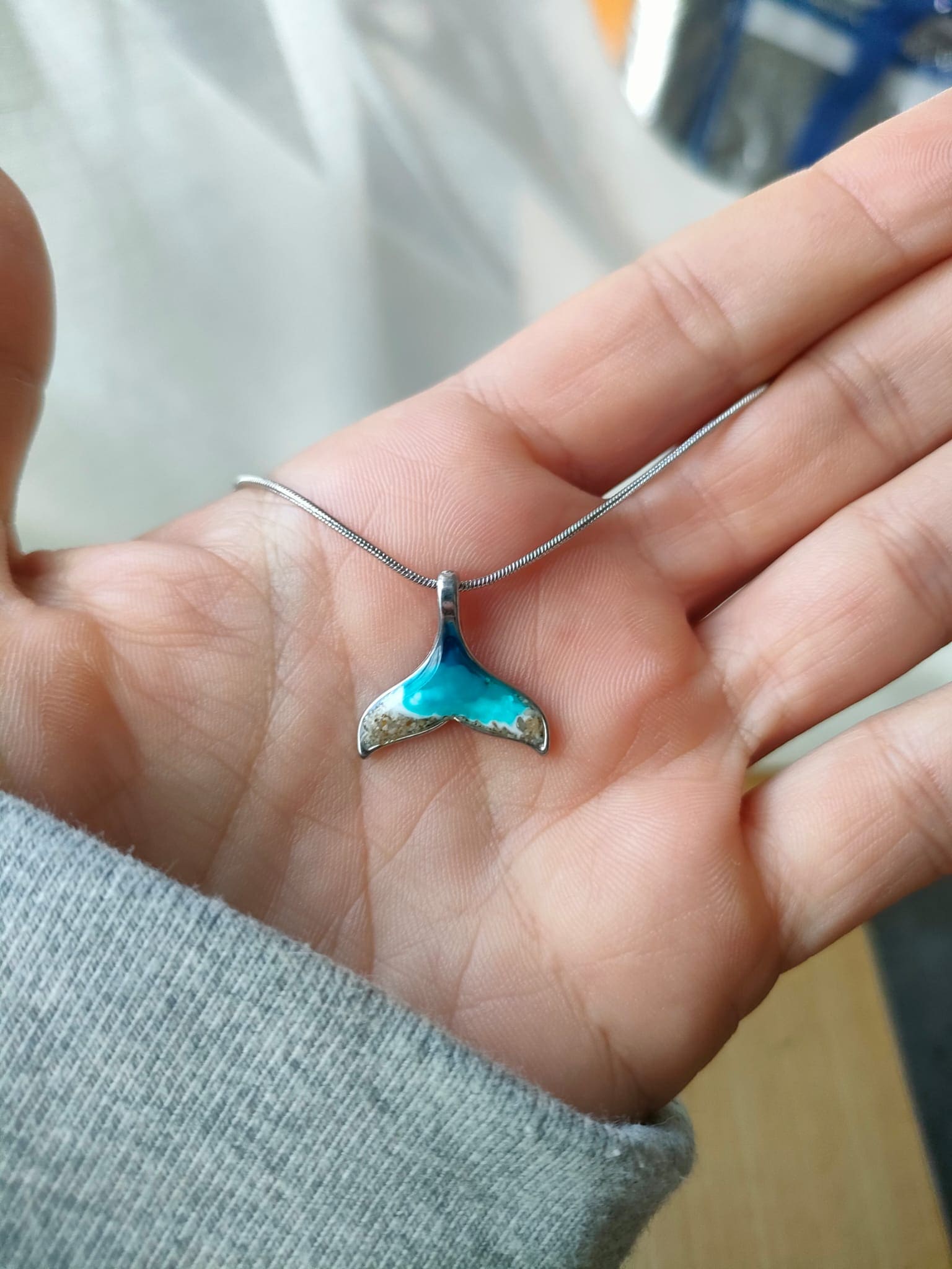 Joya en acero inoxidable, decorada a mano con resina epoxi y arena. Cadena de acero inoxidable 316L hipoalergénico. Cada pieza esta creada y decorada a mano, así que la imagen es puramente demostrativa. El producto final puede diferenciarse ligeramente de tono de color y de dibujo de la ola.